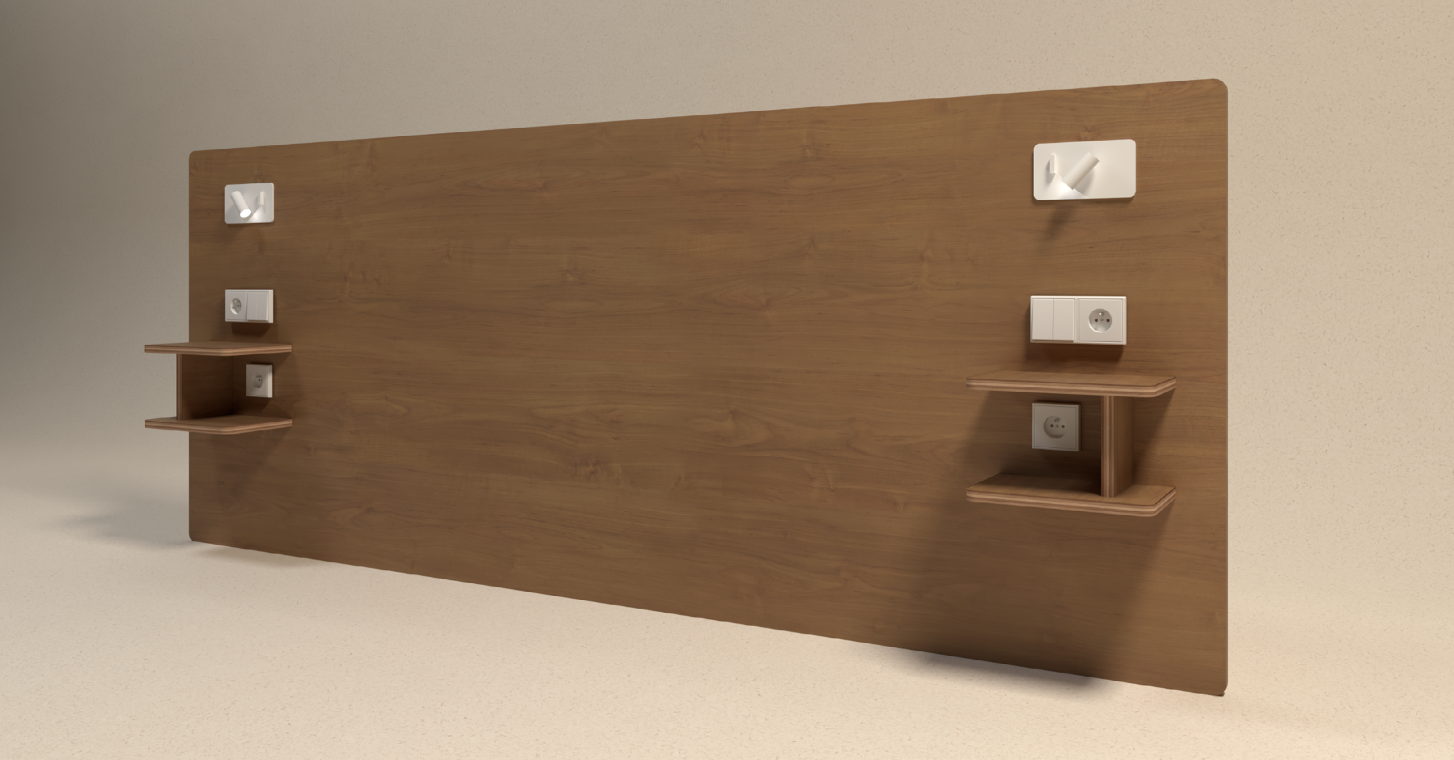 Born from our bespoke designs for Alfred Hotels, the headboard brings the refined ergonomics of luxury suites into the intimacy of the home. A timber architecture envisioned as a sanctuary, blending the warmth of tinted Okoumé with the functional precision of high-end hospitality.