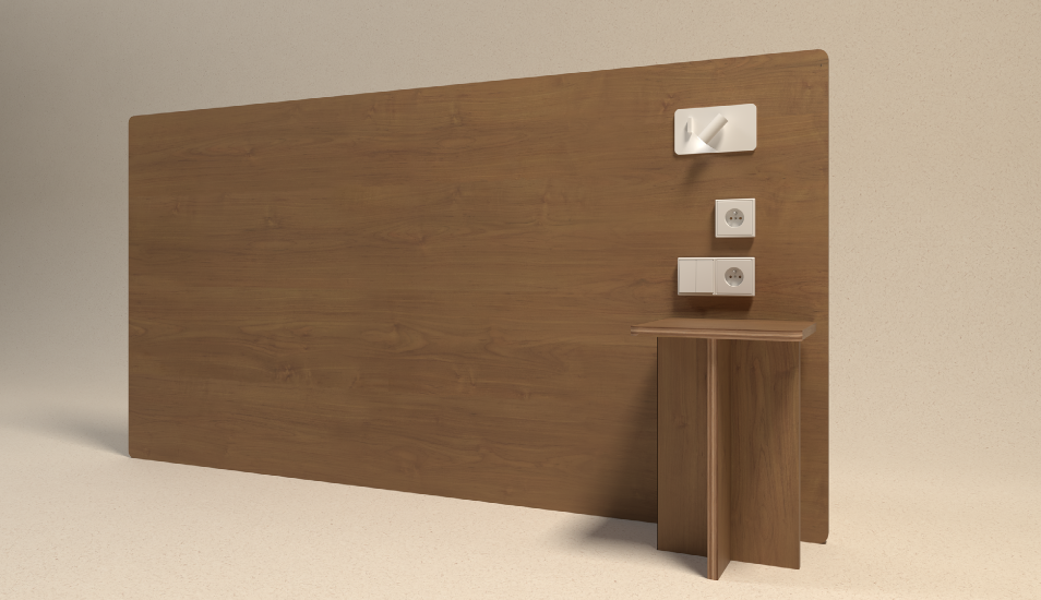 A companion to rest, the Nightstand Table echoes the clean, suspended geometry found in most serene hotel suites. Designed to keep the essentials within reach while maintaining a clutter-free space, its tinted Okoumé grain brings a grounded, organic warmth to the bedside, the final touch in a ritual of quietude.